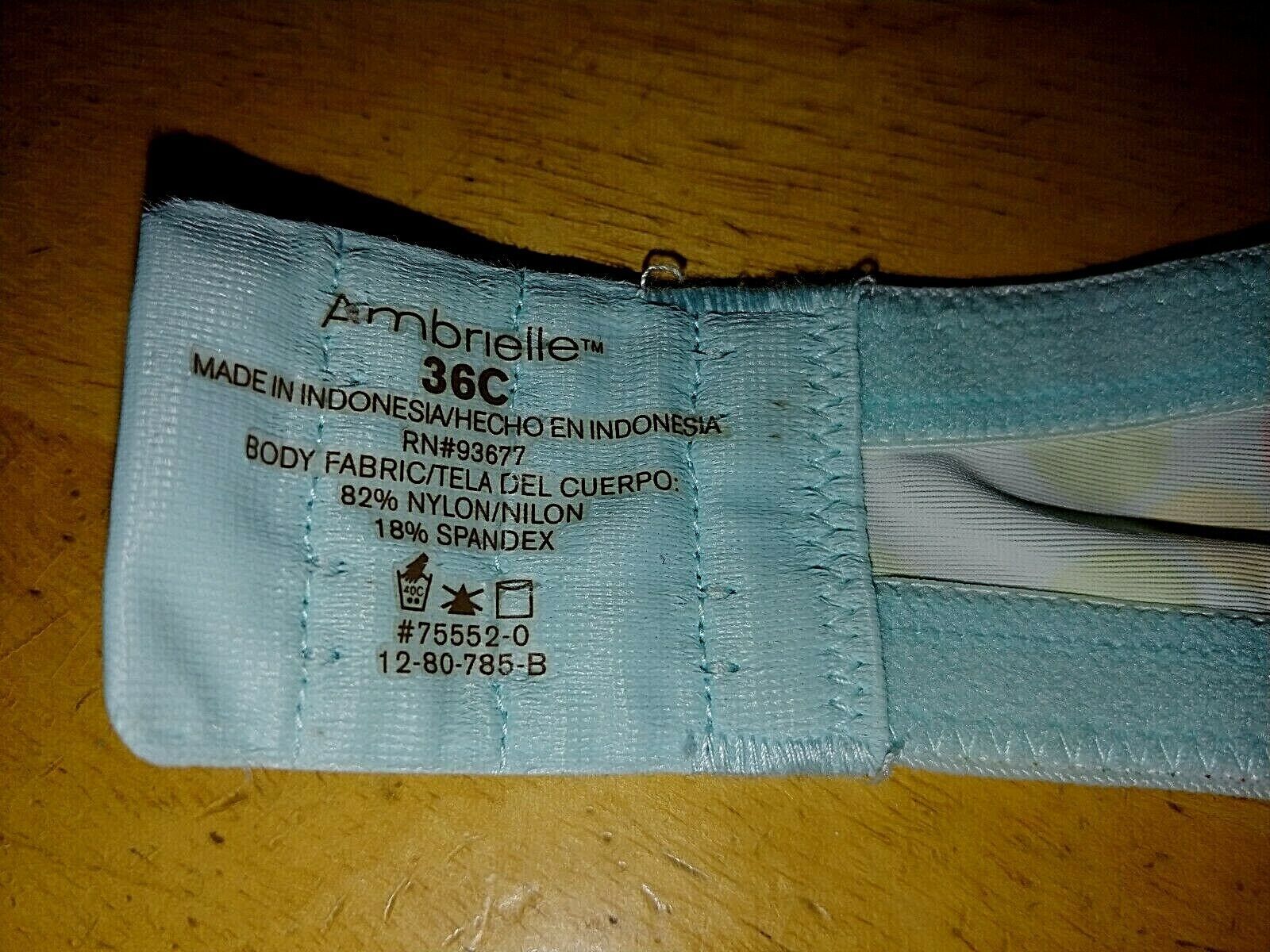 THIS IS A CUTE LADIES AMBRIELLE LIGHTLY PADDED/UNDER-WIRE NYLON/SPANDEX BRA IN A SIZE 36C. IT IS IN EXCELLENT, BARELY WORN, CONDITION.