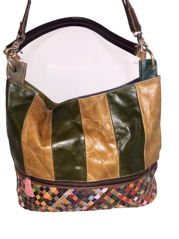 Ameri Leather Patch Work Woven Tote Shoulder Purse Cross Body Bag Colorful NICE