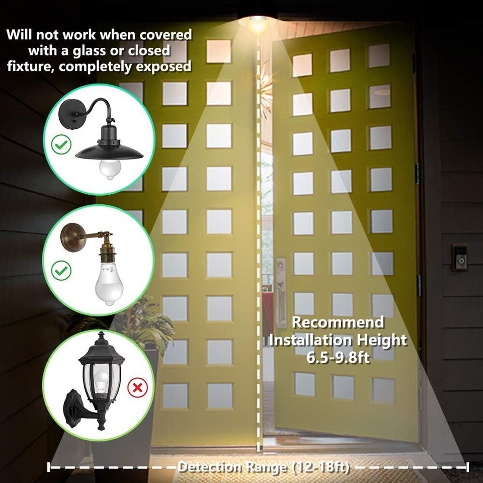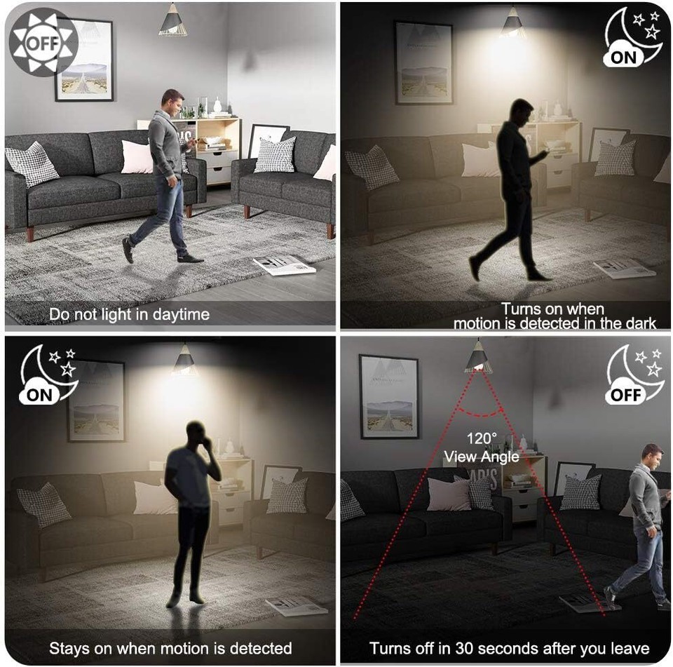 Comfortable Lighting - This A19 led light bulb offers Soft White and comfortable lighting with high CRI 80+ (color rendering index); At 2700K these bulbs deliver bright. It only lights up in the detective range at night or in the dark environment, energy-saving, environment protecting and long life, can be used in stairs, hallway, bathroom, front door, storage room, garage, closet, balcony, gate and so on. We suggest the bulb should be installed downward and no higher than 8 feet.