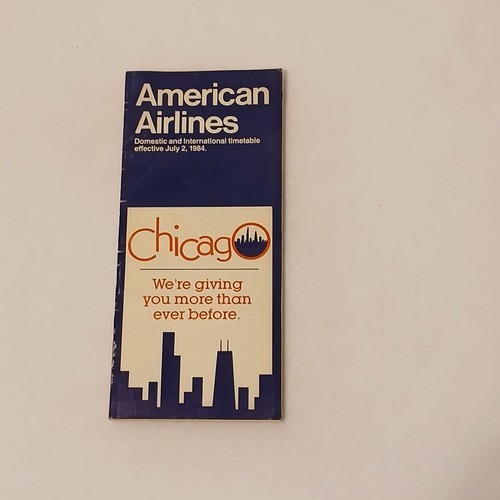 This listing is for a single American Airlines Timetable booklet. This timetable was effective on July 2, 1984. It features passenger flight schedules, passenger information, and flight itineraries. The cover is clean with minor wear. The booklet is complete. There are 154 pages. There are no missing or torn pages. The pages are clean.