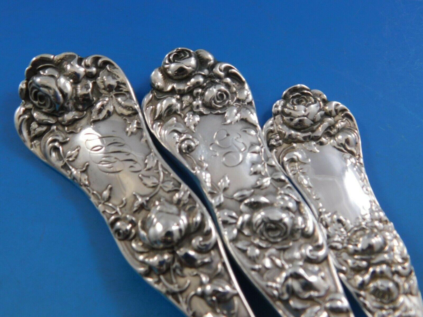 Excellent condition, with varying monograms. This set will be lightly professionally polished and sealed in individual plastic sleeves prior to shipping.
