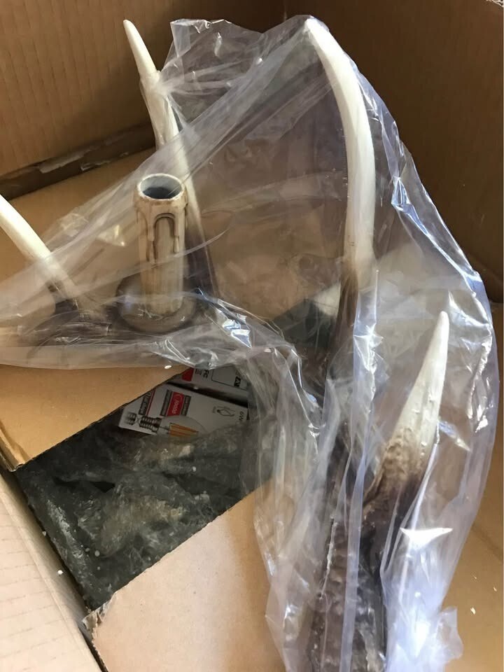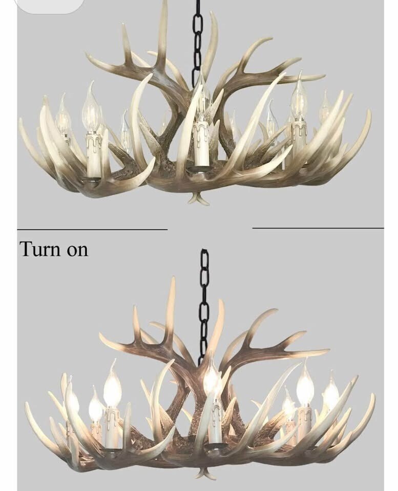 - American Deer Horn Chandelier, 9 Lights, 3 Heads, Vintage Style, Resin Horning