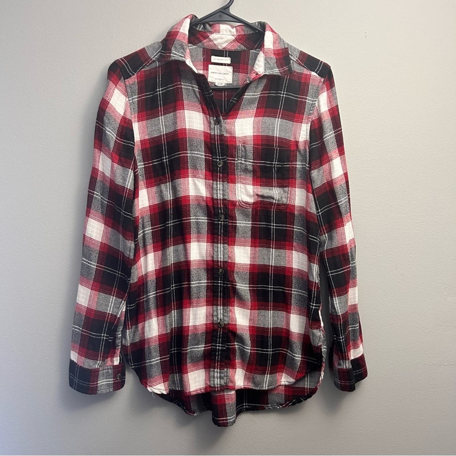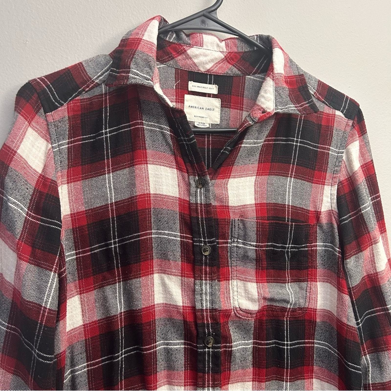 - American Eagle Boyfriend Fit Flannel Soft Casual Button Down Shirt Sz S