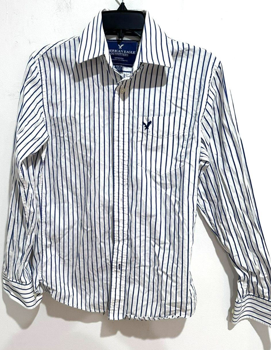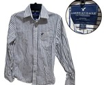 American Eagle Men’s XS White Blue Striped Long Sleeve Button Up Shirt Casual