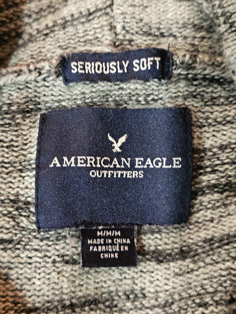 - American Eagle Super Soft Hoodie Mens Sz M Colorblock Knit Sweater
