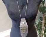 American Eagle Womens Turquoise Silver Tone Pendant Tassel Necklace w/ Lobster Clasp.