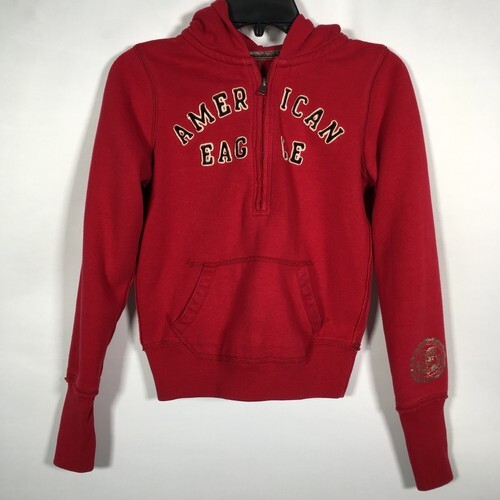 - American Eagle Women’s XS Red Sweatshirt Hoodie Half Zip Embroidered