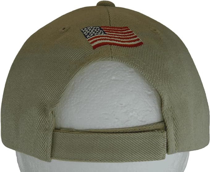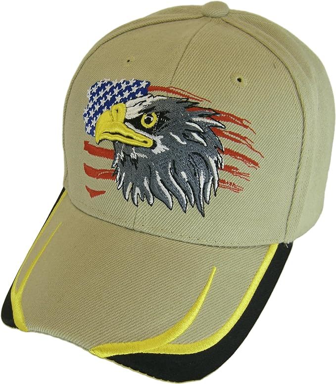 American Flag and Eagle Baseball Cap with Embroidered Bill (Khaki/Black)