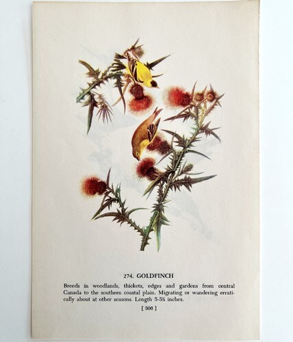 - American Goldfinch Bird Lithograph 1950 Audubon Antique Art Print Finches DWP6A