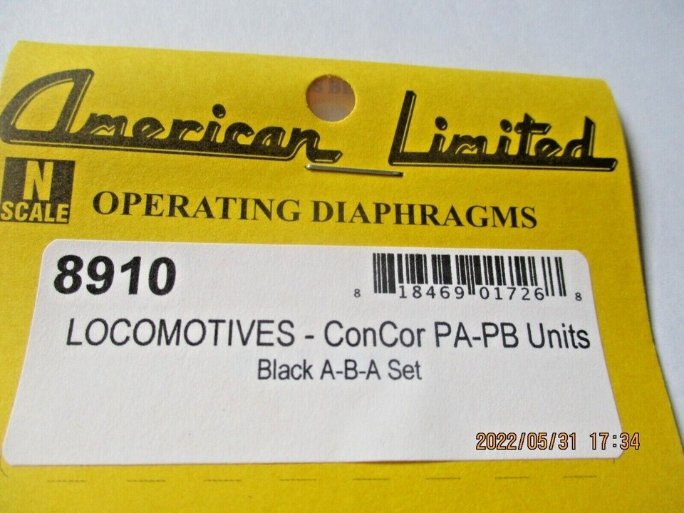 American Limited # 8910 Operating Diaphragms Black Con Cor PA-PB Locos N-Scale