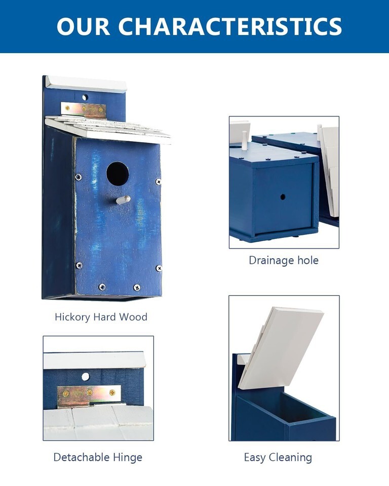 Thoughtful Design: With a standard 1.25" entrance size, it is perfectly sized for bluebirds, finches, wrens, and chickadees. The detachable hinge and easy-to-open roof make cleaning a breeze, allowing you to maintain a hygienic nesting environment for the birds.