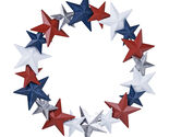 Classic Americana Design: Timeless red, white, and blue star wreath adds patriotic charm to your decor. Durable Metal Construction: Made from high-quality metal to ensure long-lasting seasonal use. Versatile Decor Piece: Perfect for indoor display on your front door, mantel, or as a thoughtful gift. Suitable for indoor use only