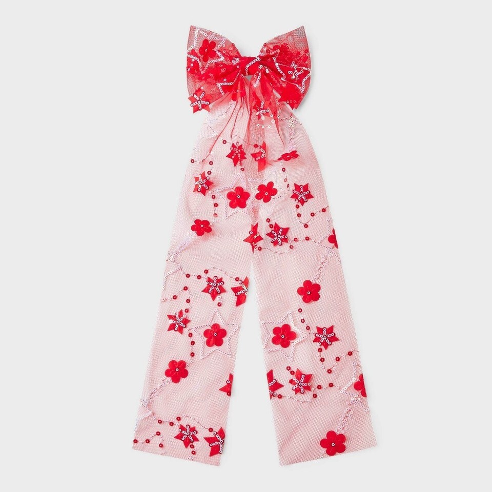Add a festive touch to your look with the Americana Star Flower Long Hair Bow Barrette - Red/White/Blue. This playful accessory features red and white star details with flowing ribbons that are perfect for Fourth of July fun or any patriotic celebration. It clips on easily and stays put, making it great for everything from backyard BBQs to parades or just showing off your patriotic spirit.