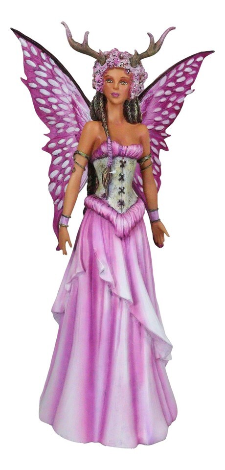 - Amy Brown Pink Butterfly Winged Bloom Tribal Fairy With Stag Antlers Statue