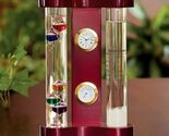 The Galileo Thermometer is a part of the Analog Weather Station from Around The Clock Shop and is an example of utilizing scientific principle to create a useful artistic piece for day-to-day use. Featuring five multi-colored spheres with gold plated tags. This thermometer works best indoors and for temperatures from 64ºF to 80ºF, going up in 4º increments.