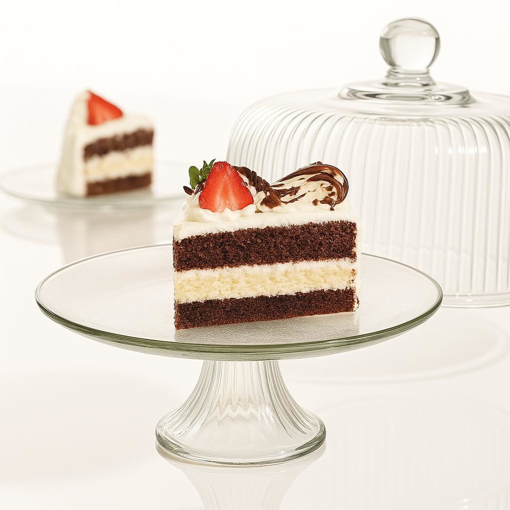 Glass cake stand and ribbed glass dome made in the USA