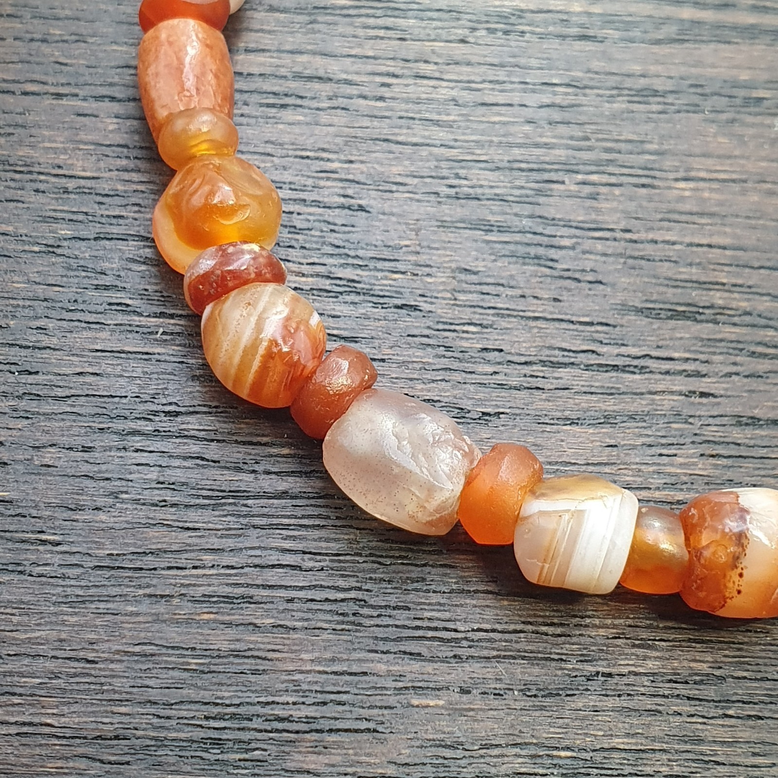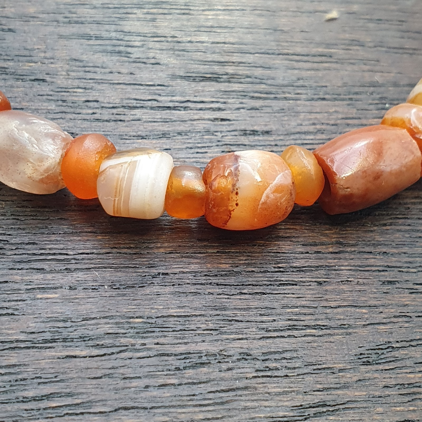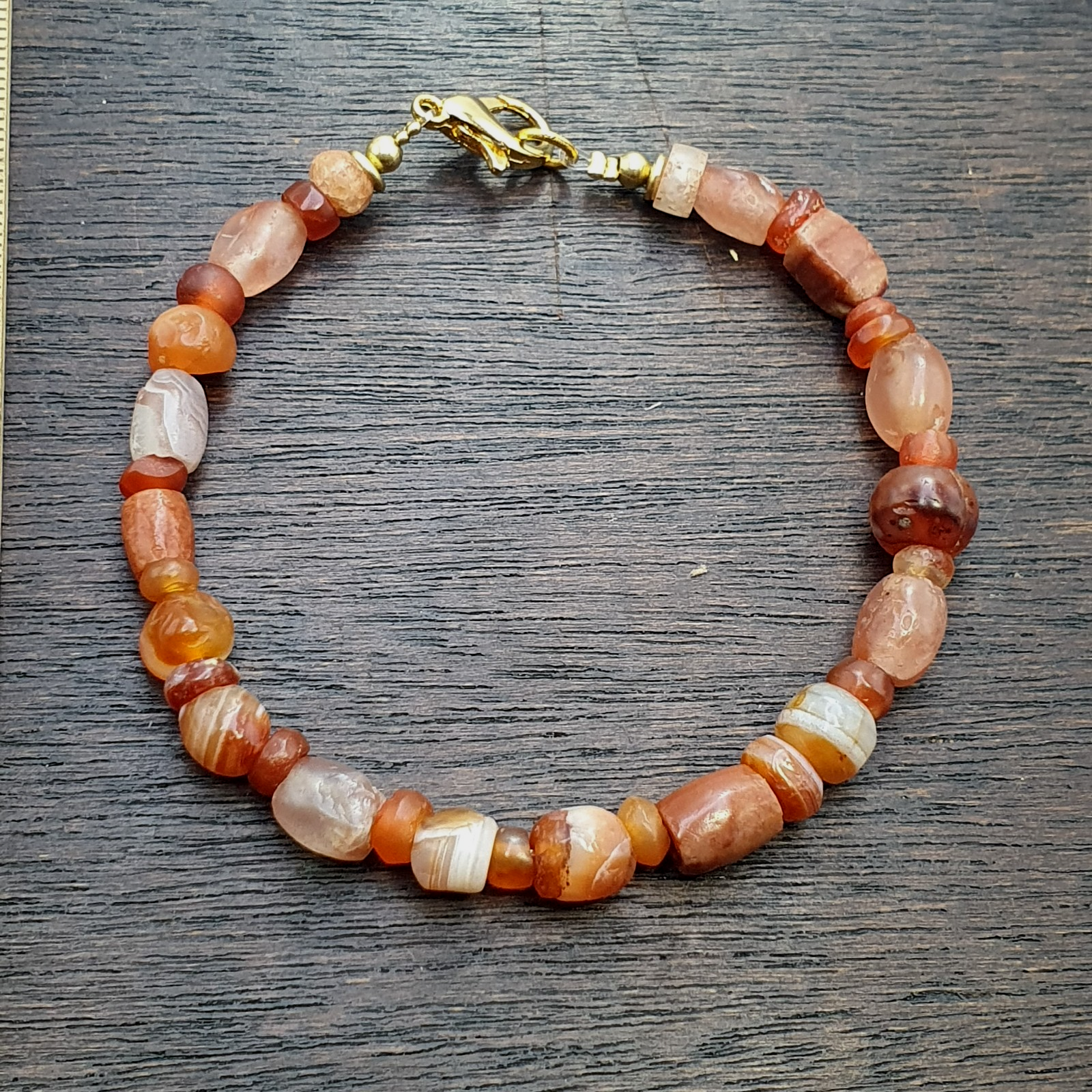 - Ancient Antique agate Carnelian beads beaded bracelet #jn-br4