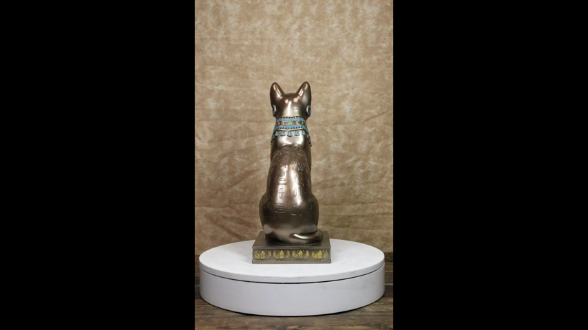 ? This Beautiful Bastet Cat Sculpture is made of designer composite resin, hand painted and polished individually. Color tone may vary from pictures.