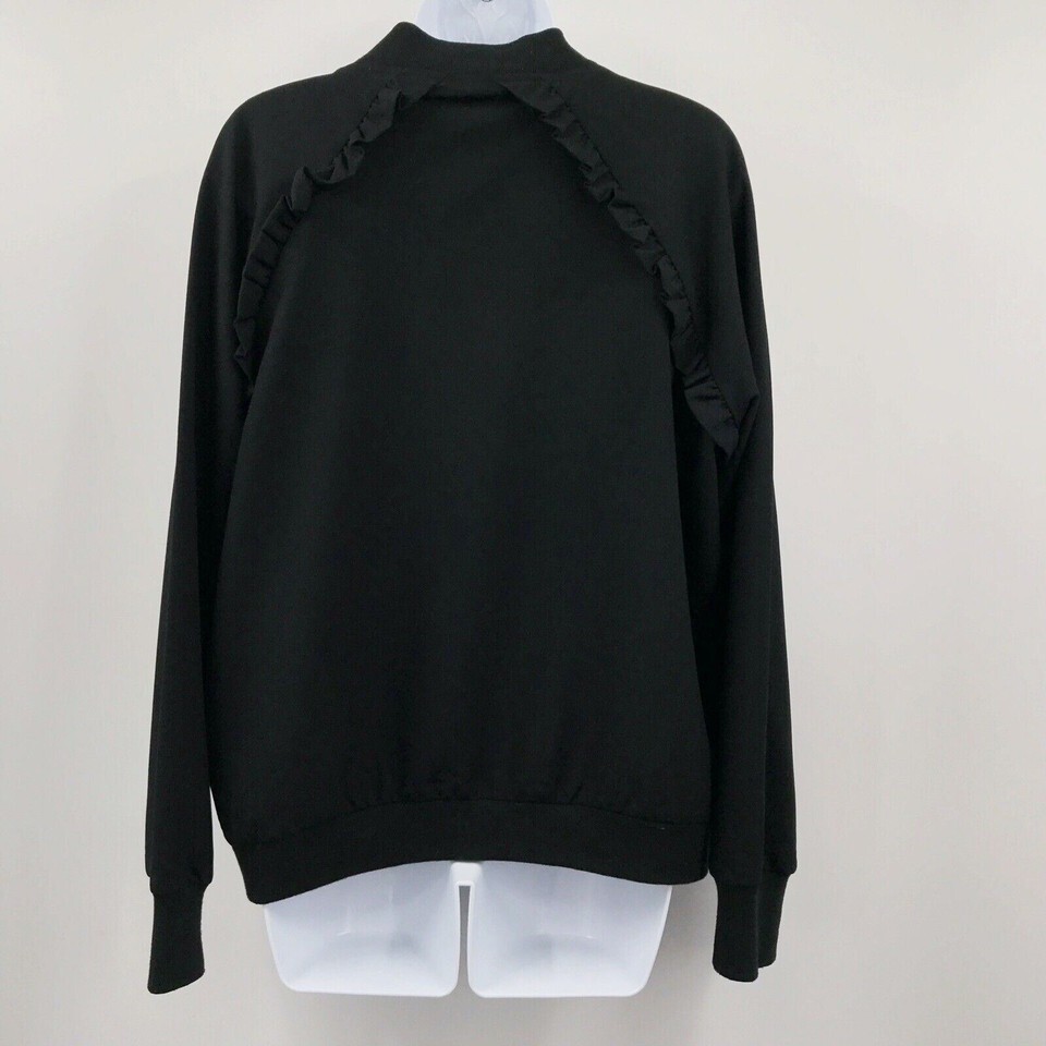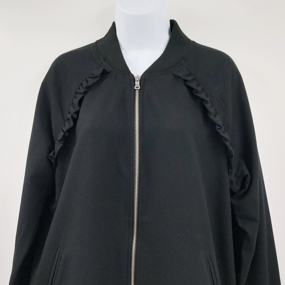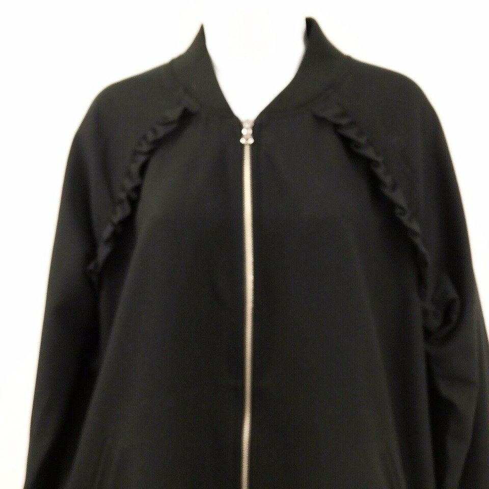 - Andeawy Women's Medium Full Zip Ruffle Black Side Pocket Jacket