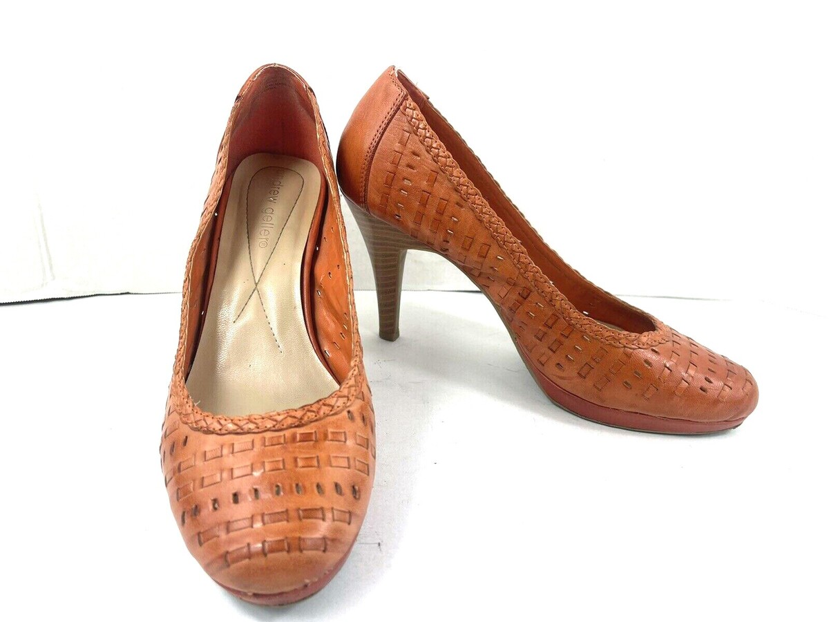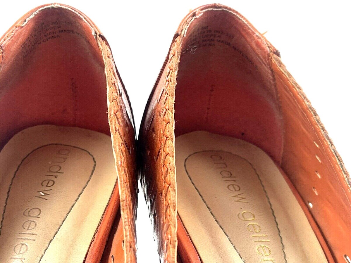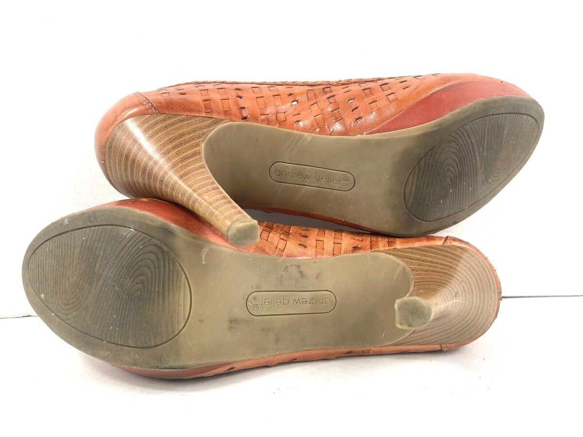 - Andrew Geller Heels Women 8.5 M Girly Shoes Brown Orange Woven Leather Pumps