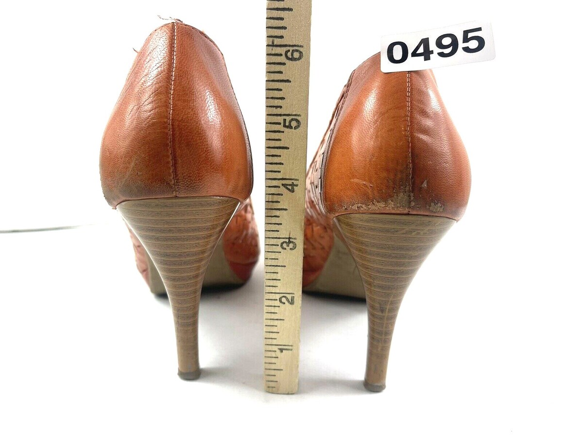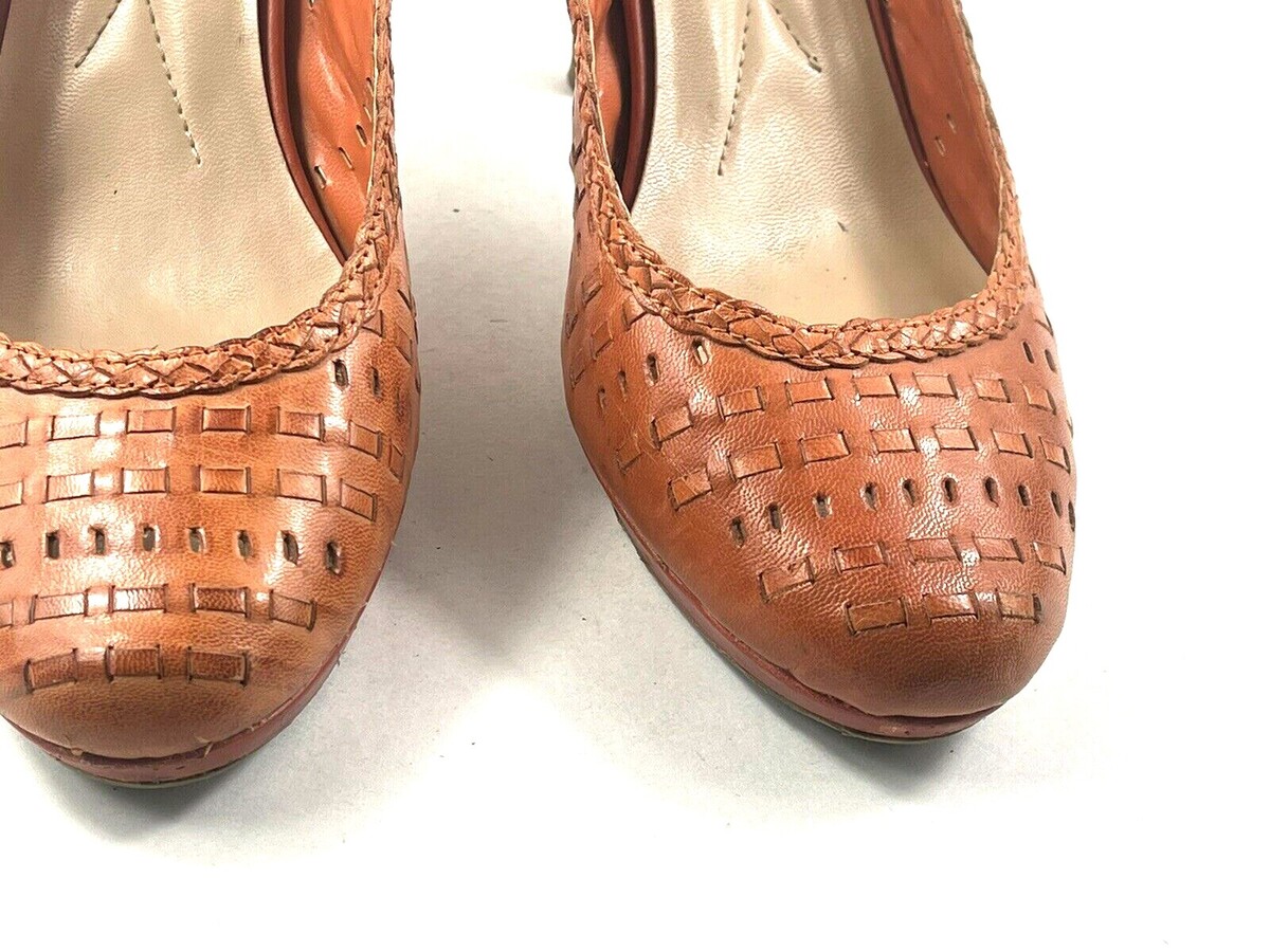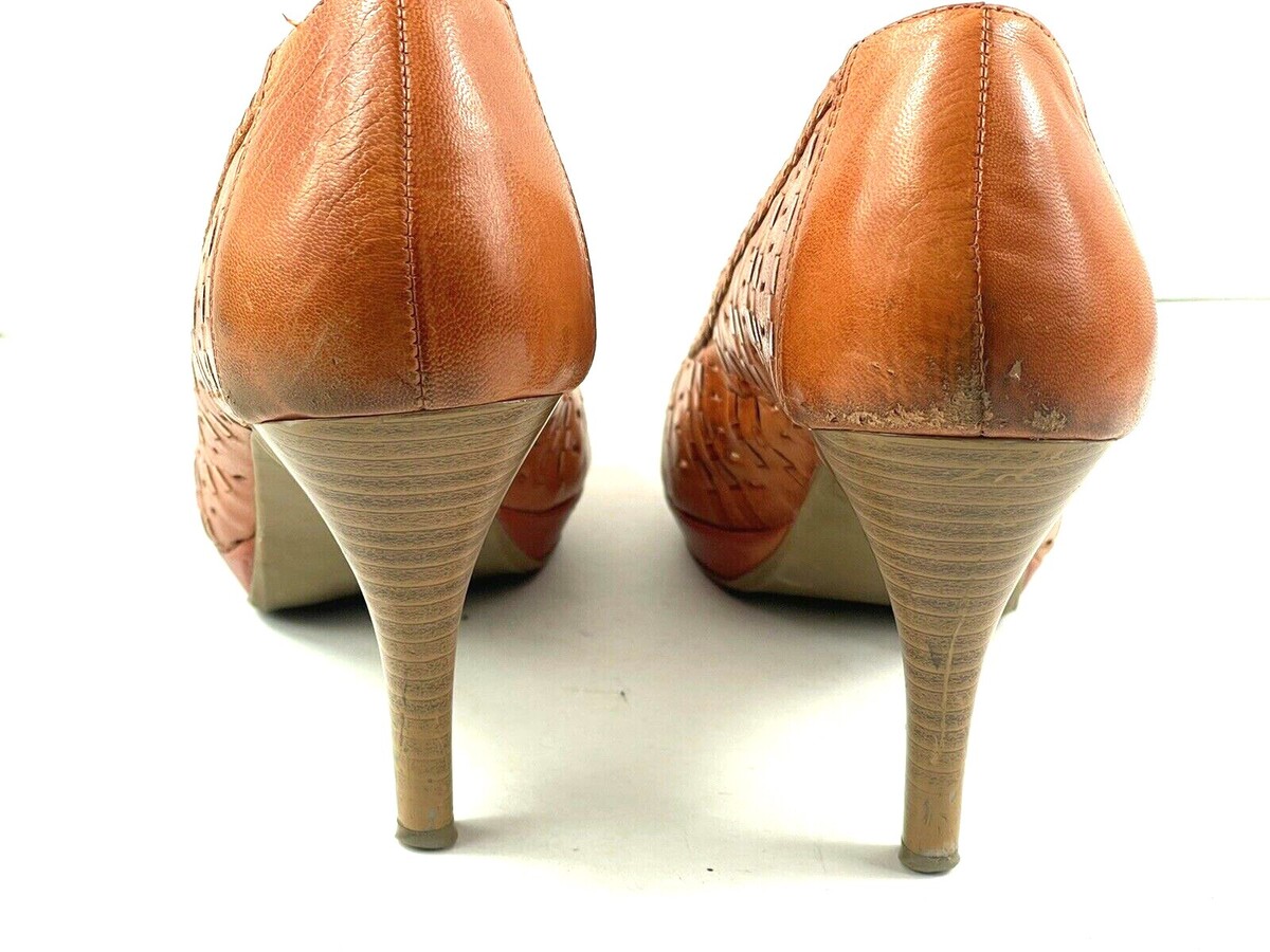 - Andrew Geller Heels Women 8.5 M Girly Shoes Brown Orange Woven Leather Pumps