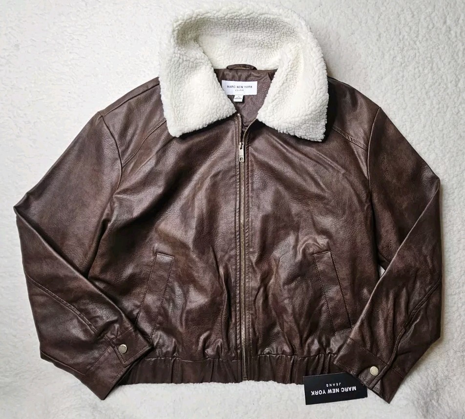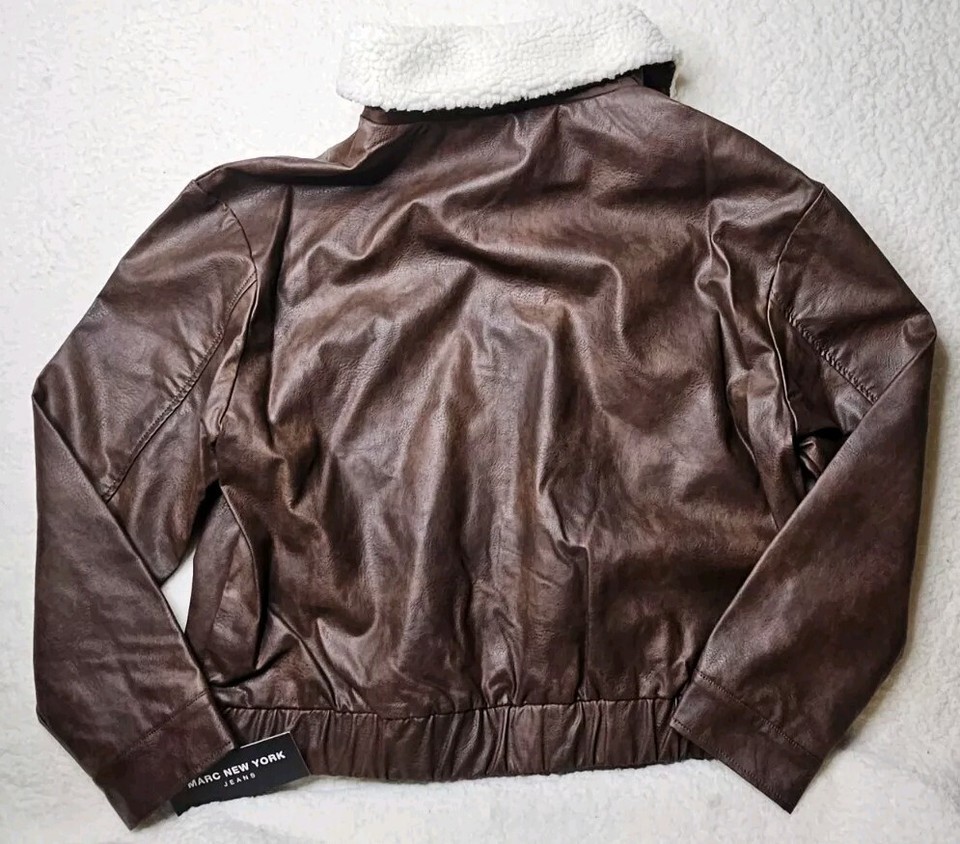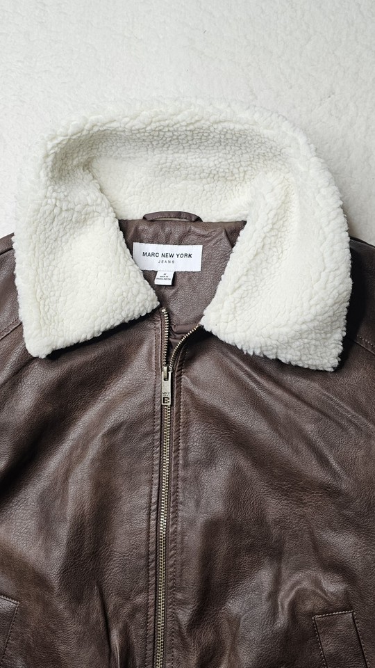 - Andrew Marc New York Men’s Leather Jacket with Sherpa Trim Collar Men's M New