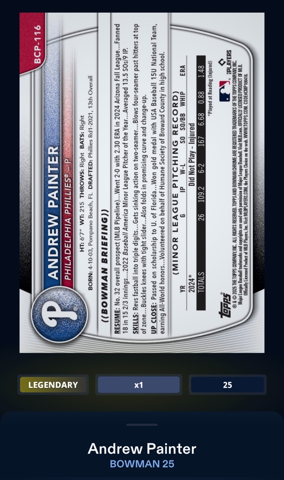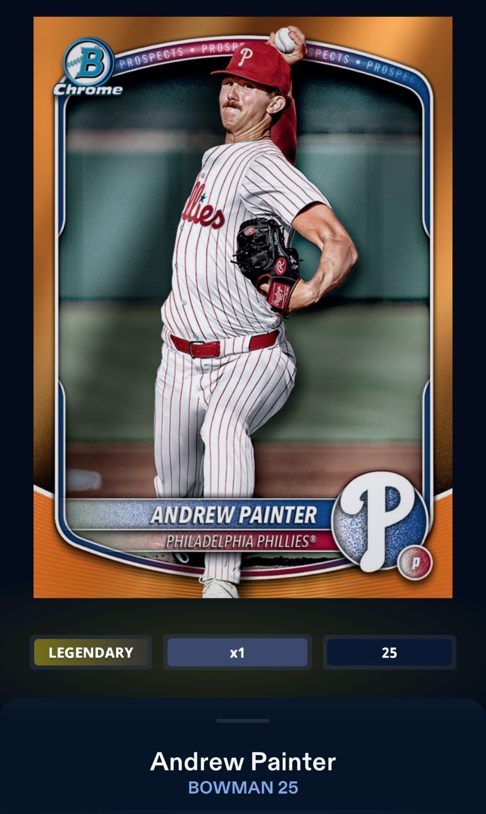 This is for a DIGITAL Andrew Painter Digital Bunt Bowman Orange Legendary Prospect Phillies CC 25