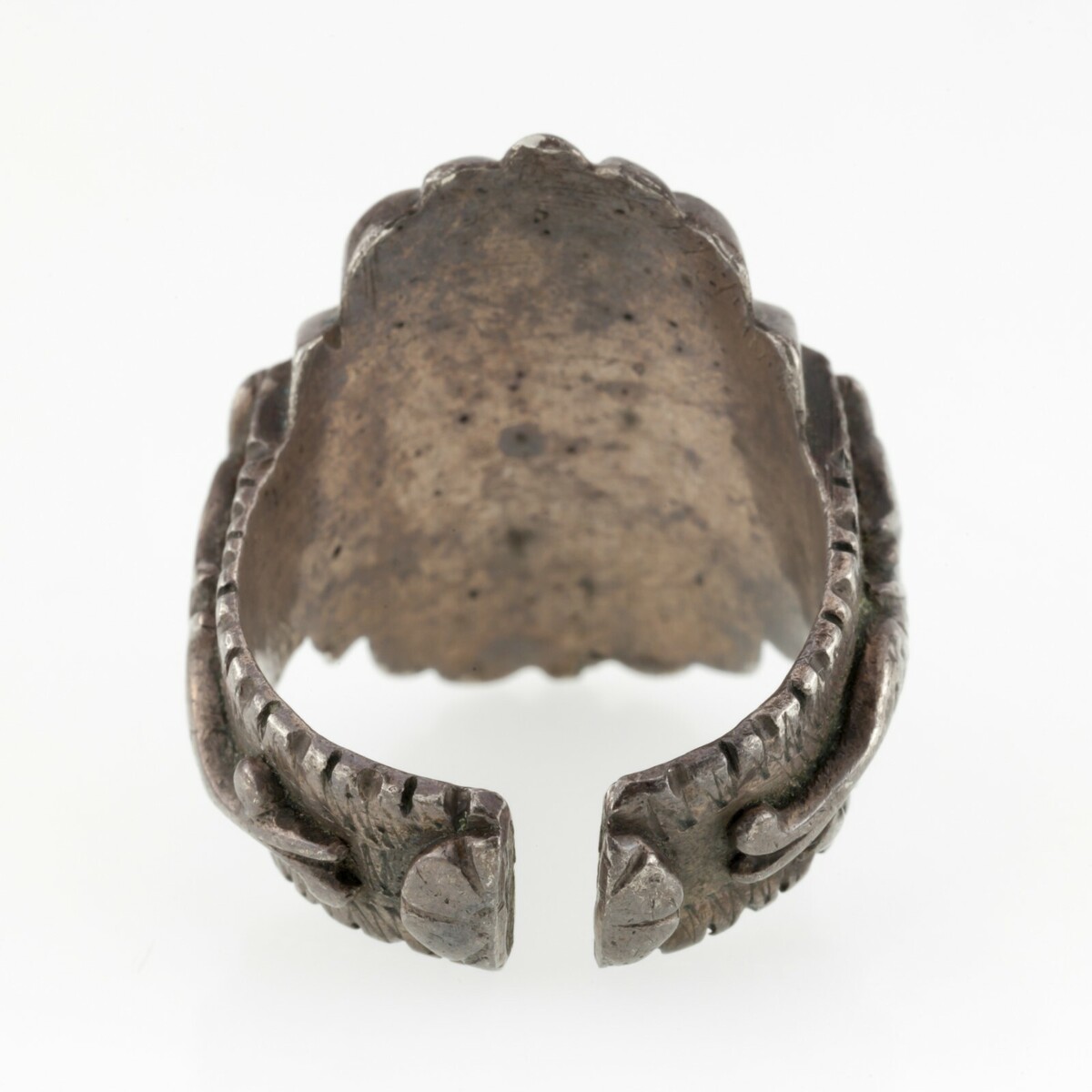Anello da motociclista messicano vintage con testa di Troia degli anni '40 circa, misura 12