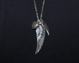 - Angel Wings & Heart Pendant ~29.5"+ Necklace Silver Toned Missing One Rhinestone