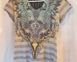 Angels Diamonds Women's T-Shirt Multicolor Damask Stripe V Neck Rhinestone L