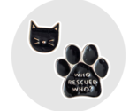 - Animal Enamel Pins: Black Cat Paw Print, Who Rescued Who?