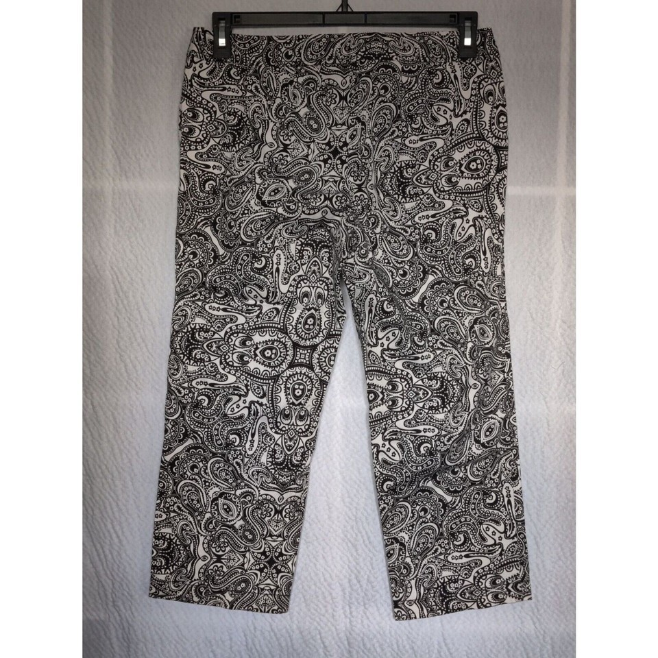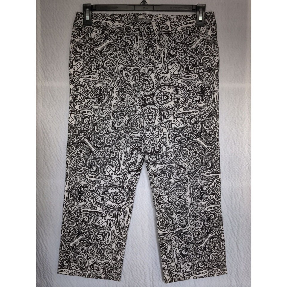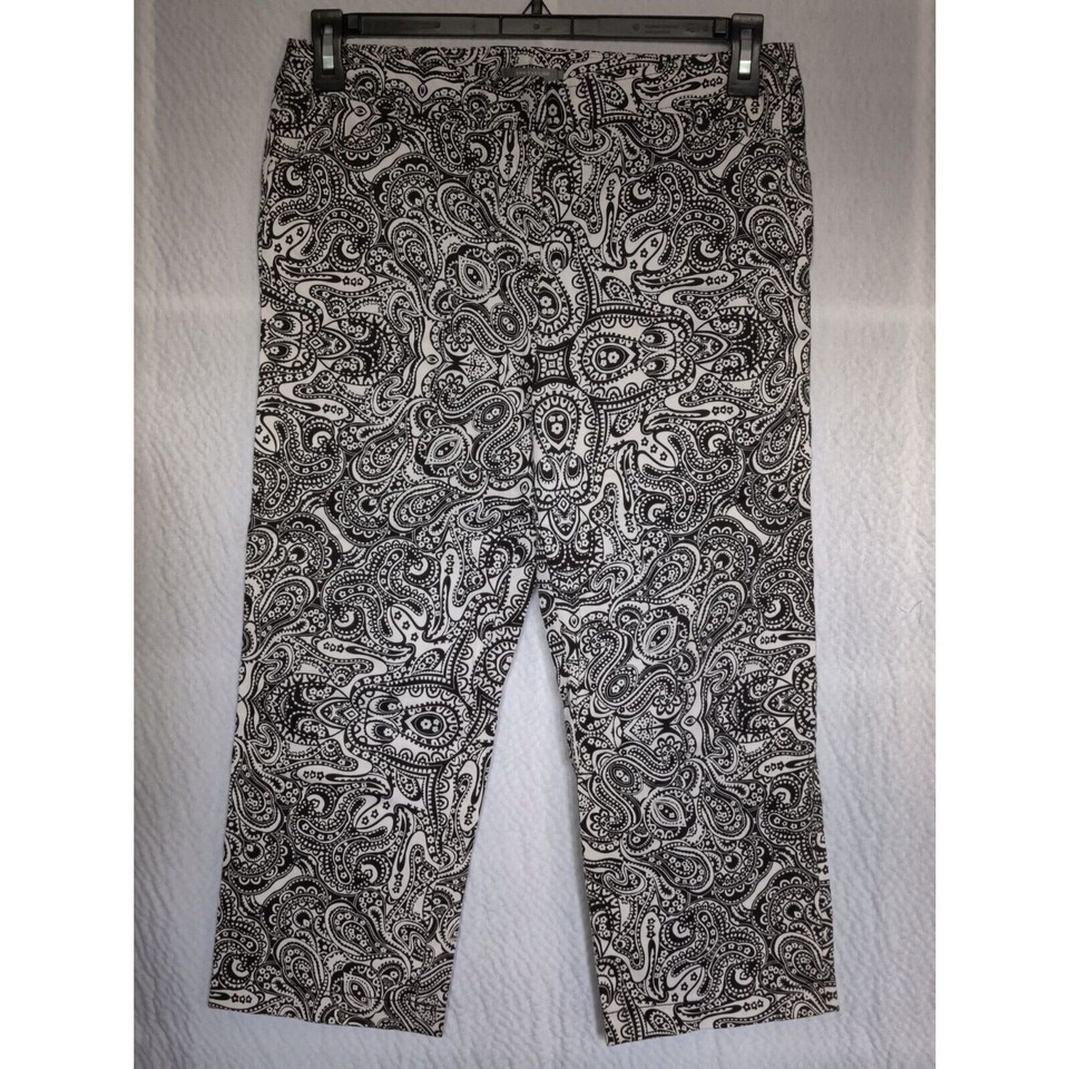 - Ann Taylor Black & White Paisley Straight Crop Pants Sz 8P Cotton Blend Stretch