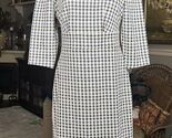 Ann Taylor Cream Tweed Houndstooth Sheath Dress Puff Shoulder 3/4 Sleeve