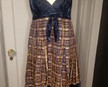 - Anna Sui Metallic Plaid Velvet Party Slip Dress Bow NWT 12 USA Navy Blue Gold