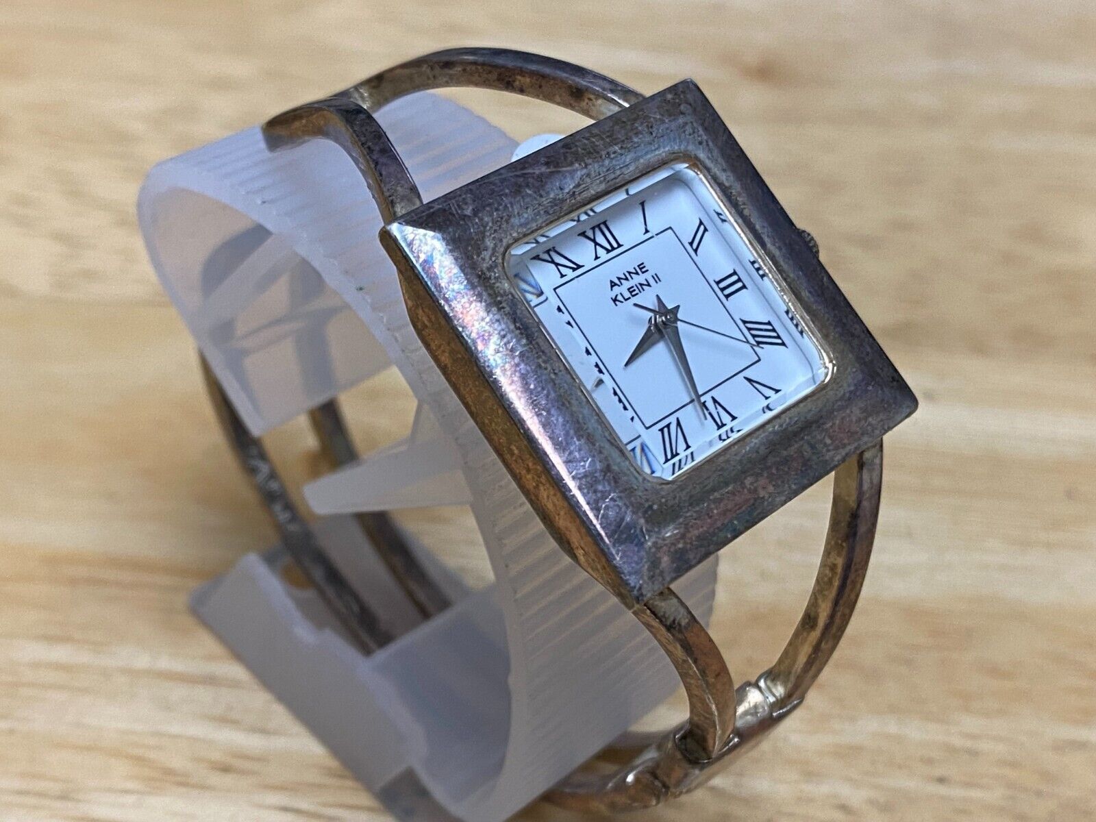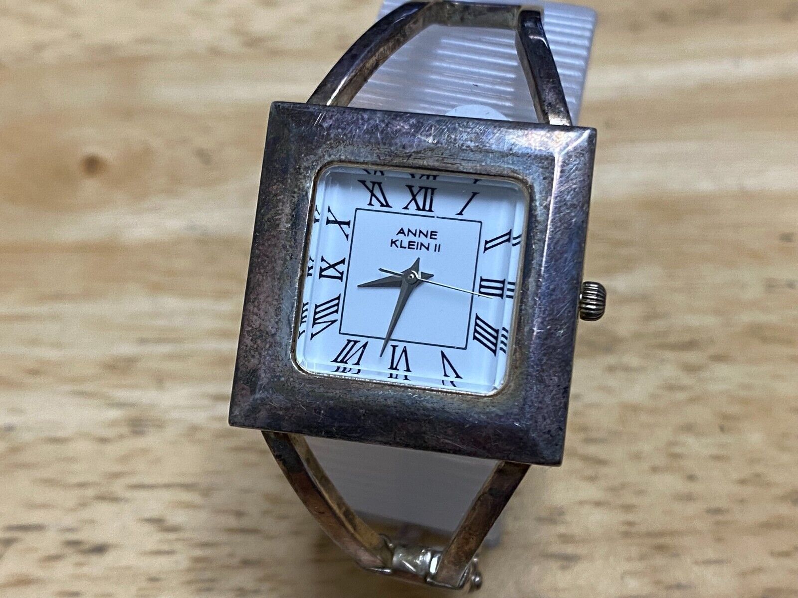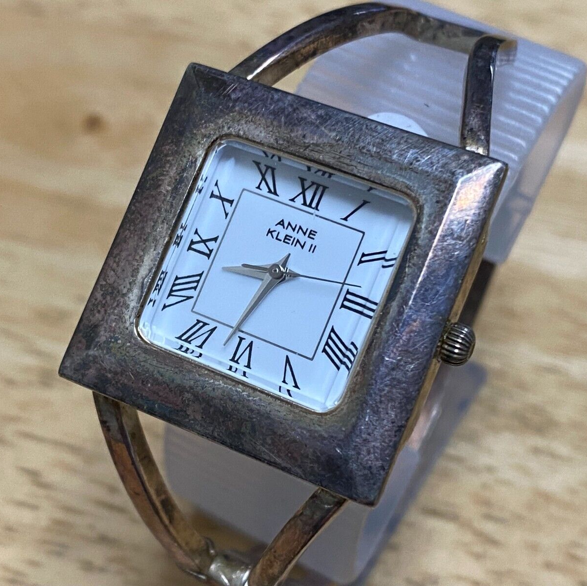- Anne Klein 10/1560 Lady Silver Square Cuff Bangle Analog Quartz Watch~New Batter