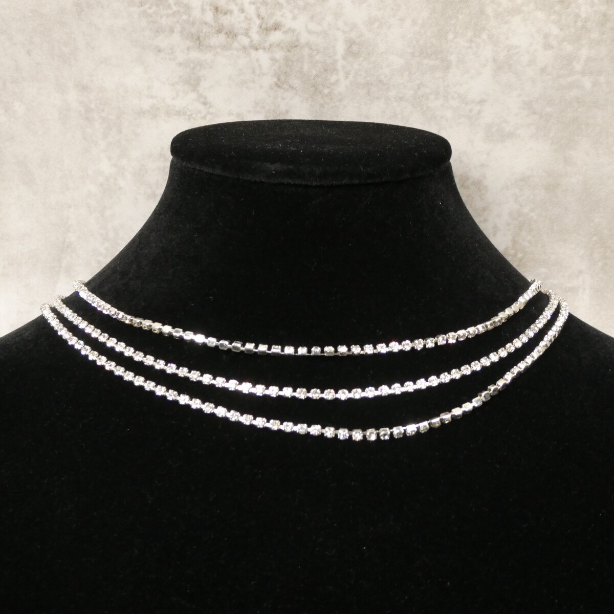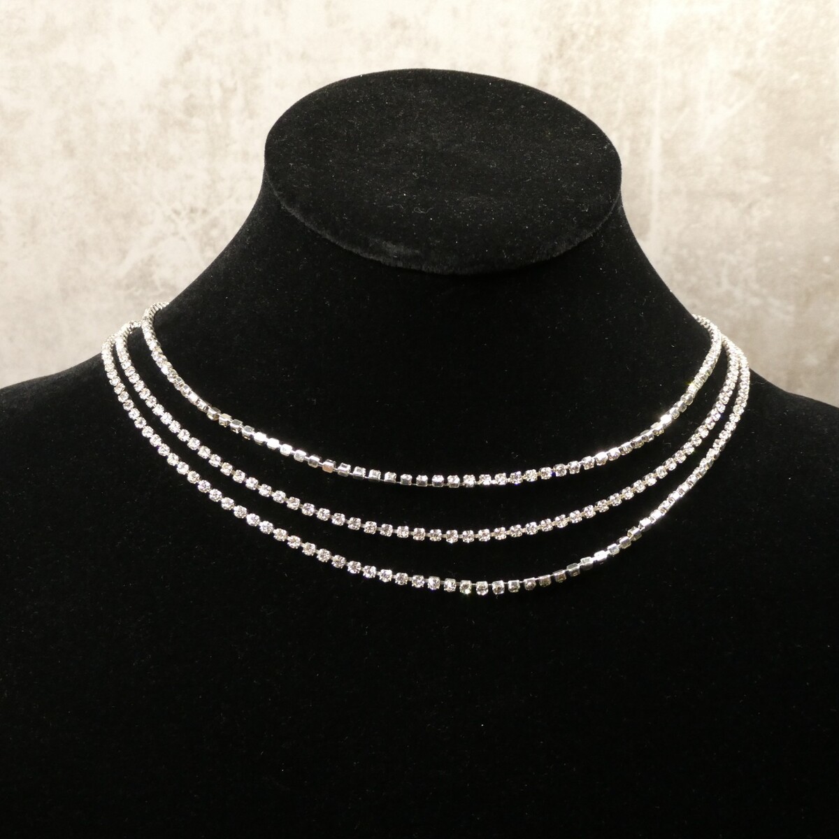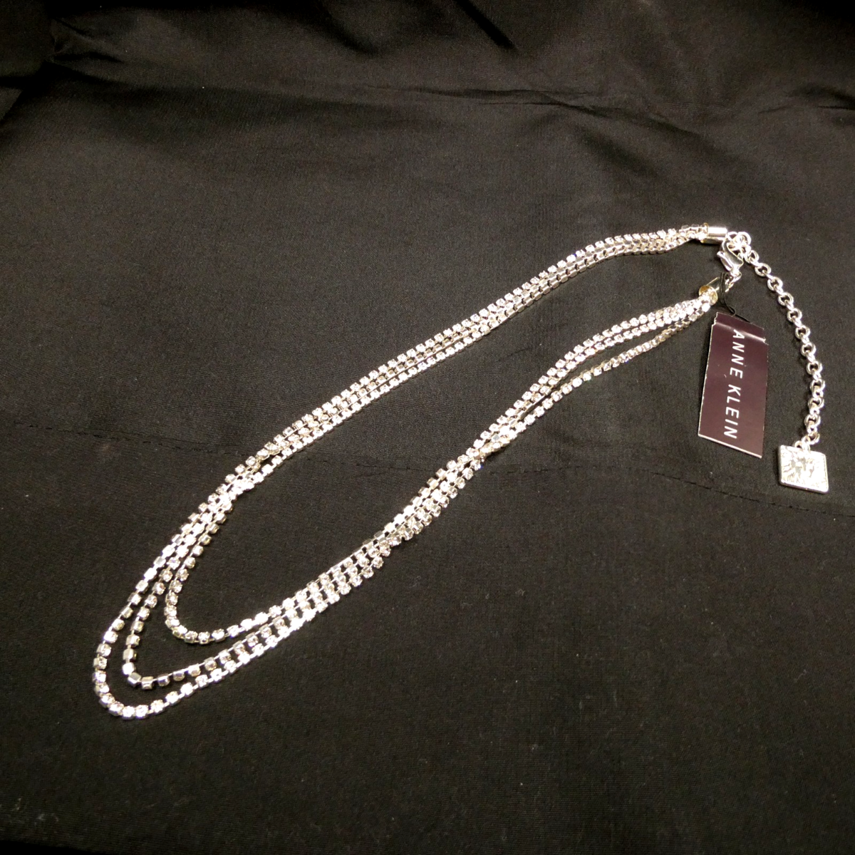 For Sale: Anne Klein Silver-Toned Three-Strand Crystal Box Chain Necklace - NEW!