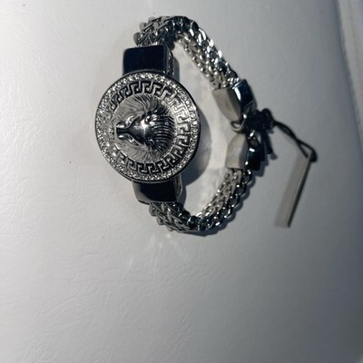 ANTHONY JACOBS STAINLESS DOUBLE ROW CHAIN LION HEAD BRACELET
