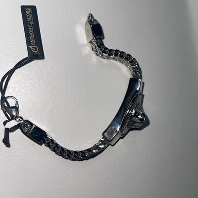 - ANTHONY JACOBS STAINLESS DOUBLE ROW CHAIN LION HEAD BRACELET 9"
