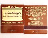 - Anthony's Fine Restaurant Vintage Matchbook Mass Matches Unstruck Lot Of 2 E19G
