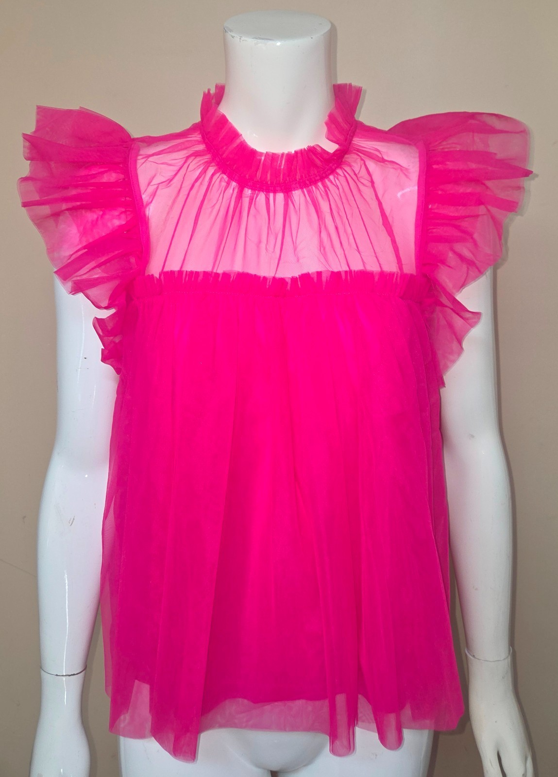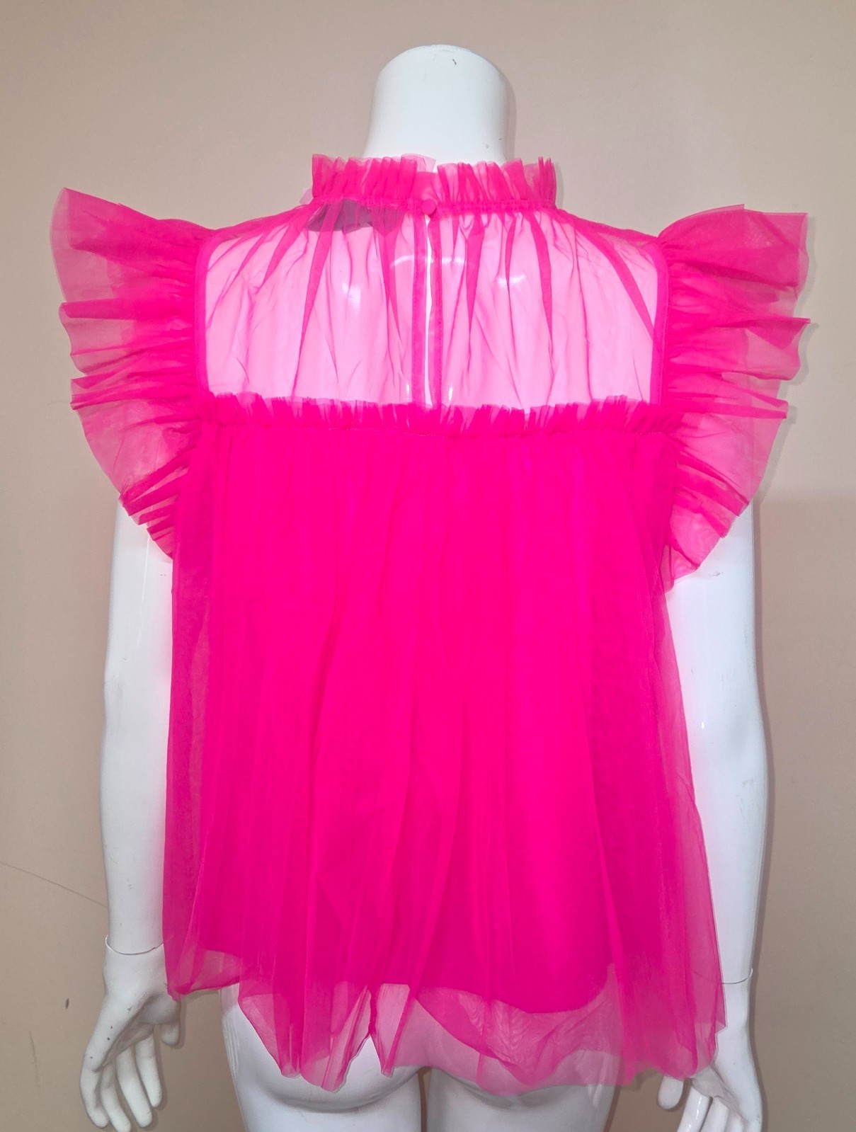 Anthropologie Sunday in Brooklyn Pink Frilled Tulle Ruffle Blouse Size SMALL NEW