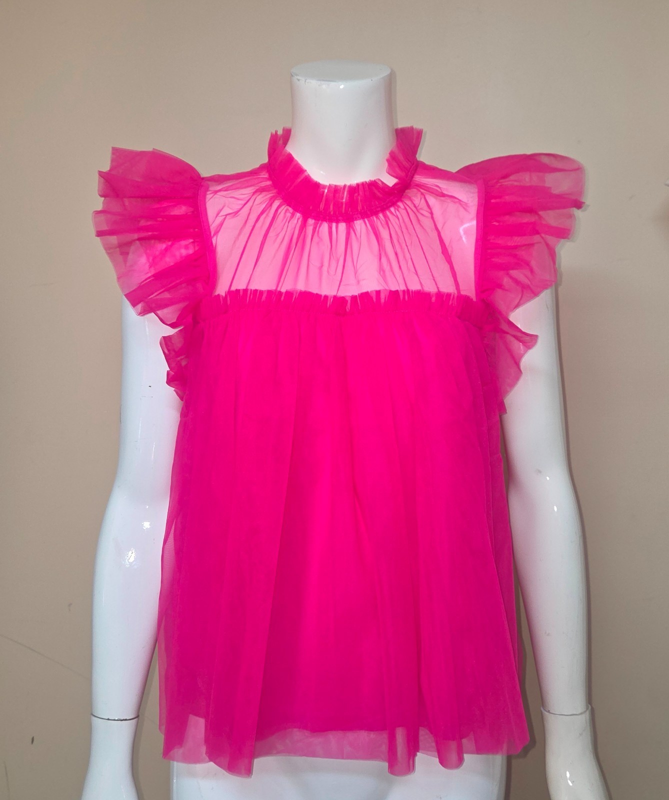 - Anthropologie Sunday in Brooklyn Pink Frilled Tulle Ruffle Blouse Size SMALL NEW
