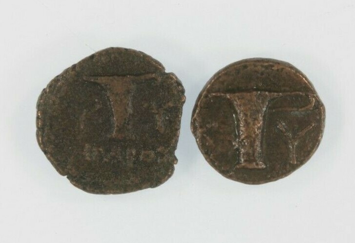 Ancient Grecia Set a 2-coin // 350 a.C. e 250 a.C. Cyme Aeolis AE // Amazon Eagle Vase