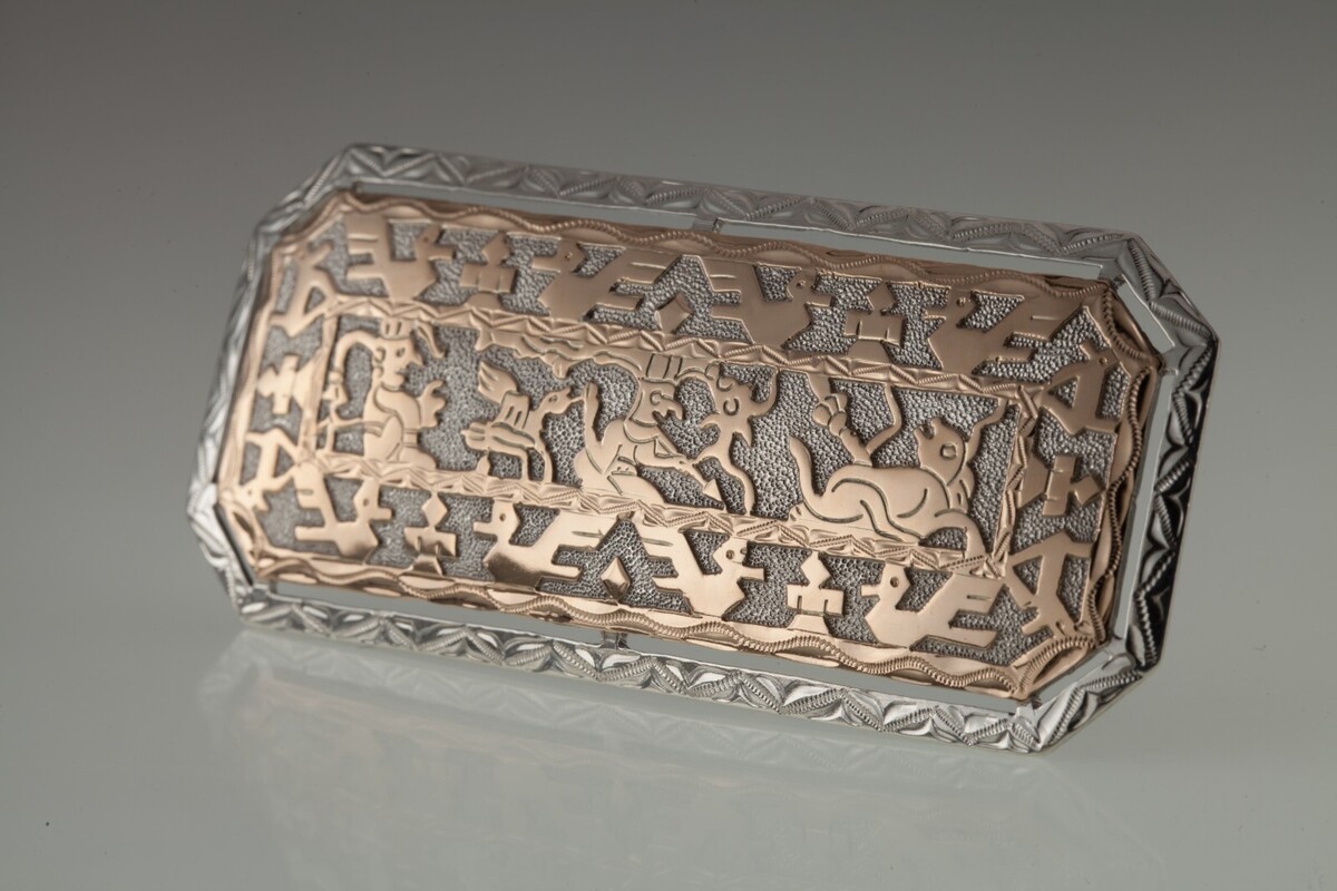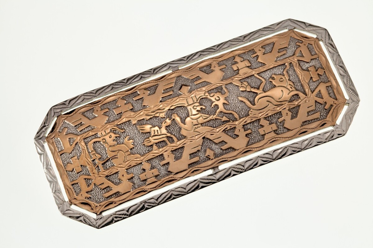 Splendido sterling anticato e braccialetto peruviano in oro 18k