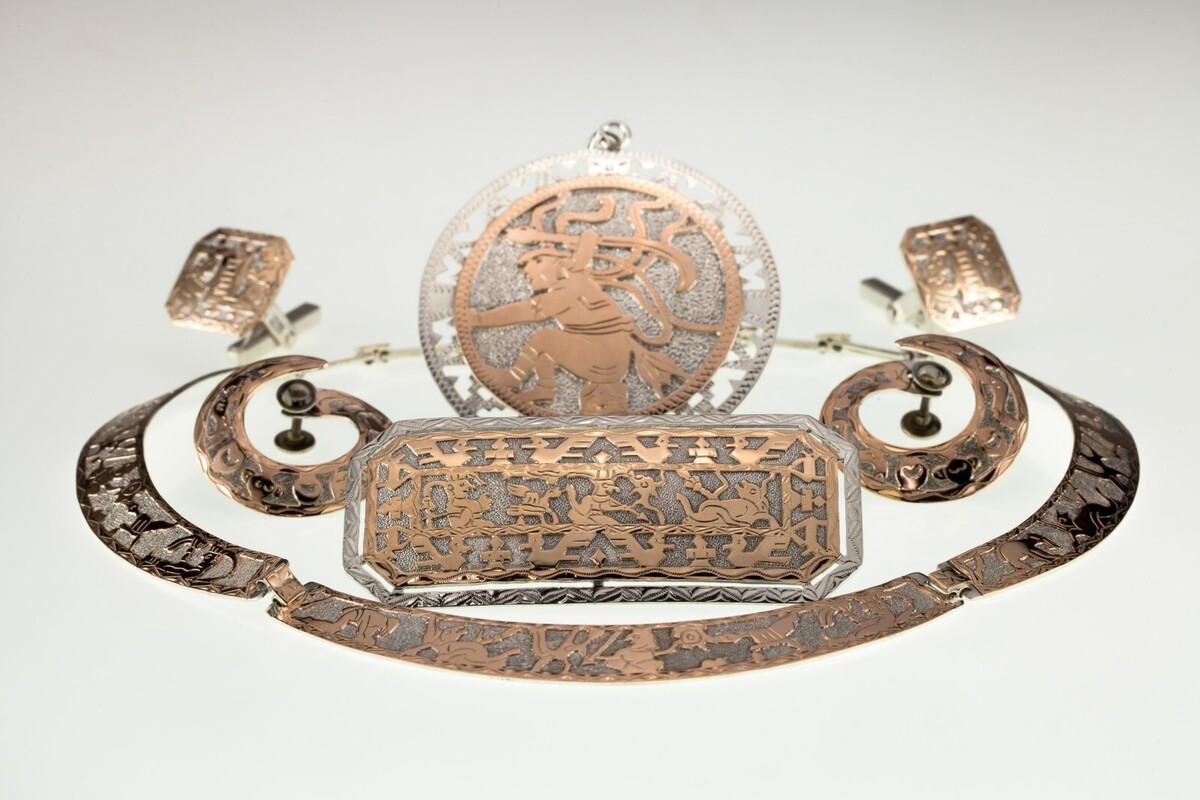 - Antico Guatemala Maya Argento E Color Oro Gioielli Lotto Di 5