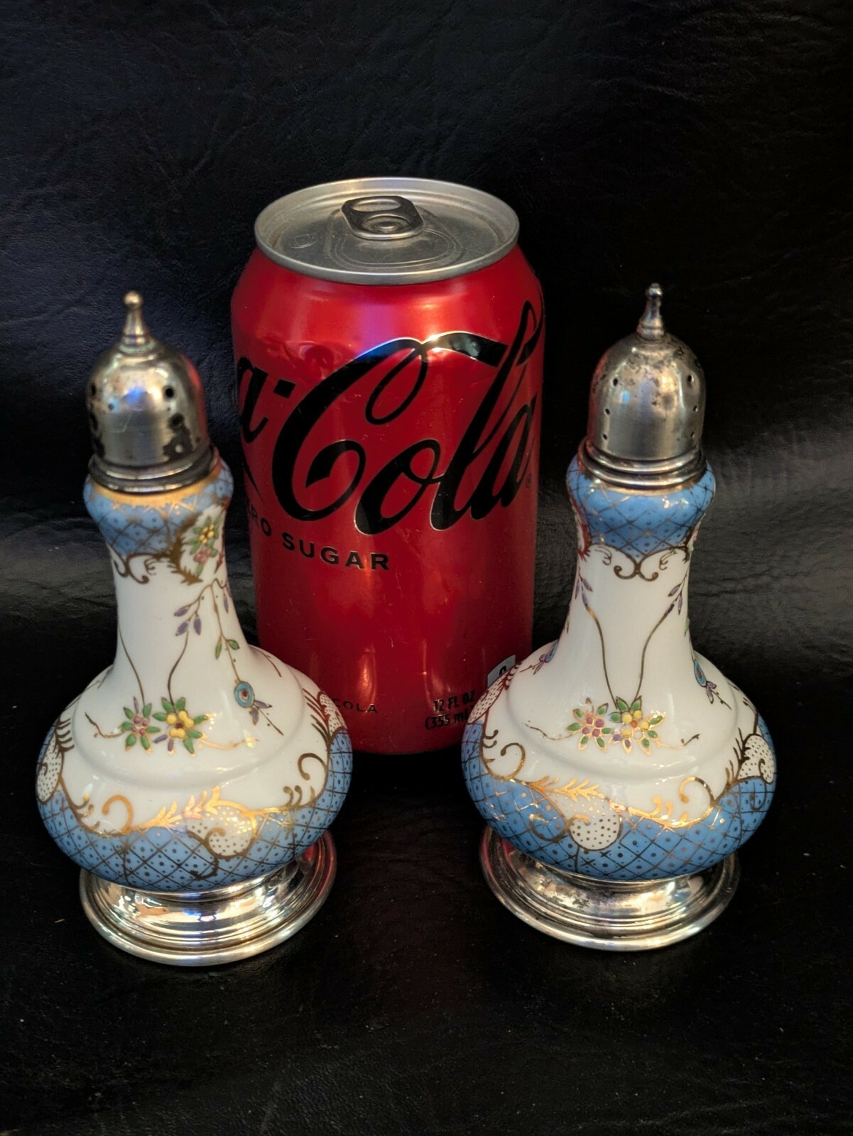 - Antico Ornato Porcellana Cina Sale E Pepiera Argento Sterling Coperchio Base