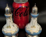 Antico Ornato Porcellana Cina Sale E Pepiera Argento Sterling Coperchio Base