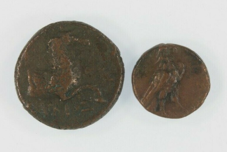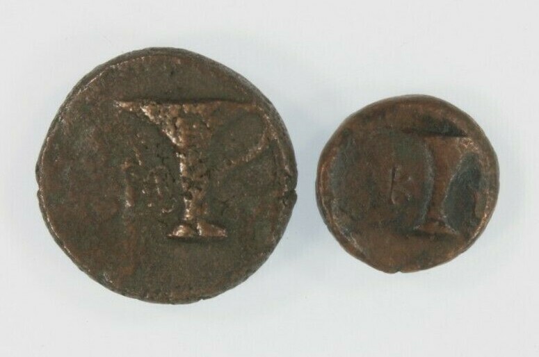 Antikes Griechenland 2-Münzen-Set // 3. Jahrhundert v. Chr. Kyme / Cyme Aeolis // Vase
