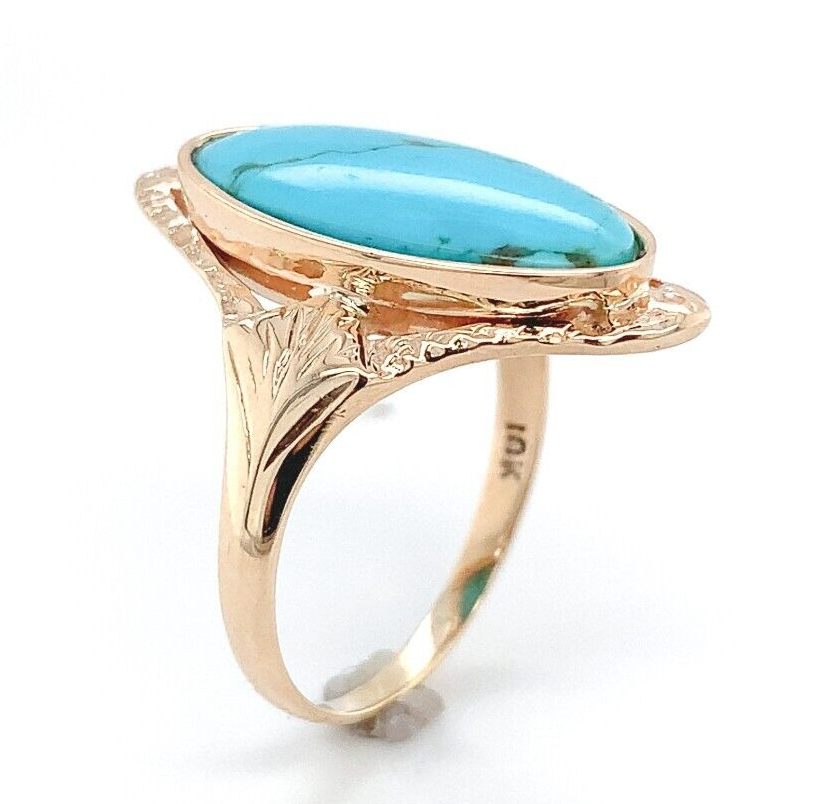 - Antique 10k Rose Gold 3.29 Carat Genuine Natural Turquoise Ring Size 7. 5 #J6561