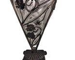 This is an antique Victorian-era vase, dating back to 1890-1910. It is a handmade, hand-blown glass vase with a decorative pattern of vines. The vase is large, measuring 9.5 inches, and features a unique design with caged glass and cast iron elements. It is clear in color and adorned with flowers and leaves, making it a vintage piece of art glass from the late 19th to early 20th century.