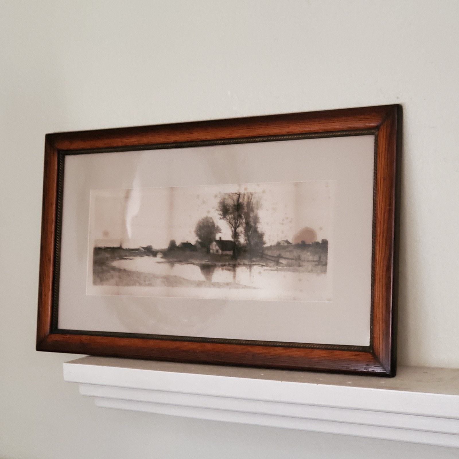 - Antique 1892 E.L. Field Etching 31x17 Inch Wood Framed